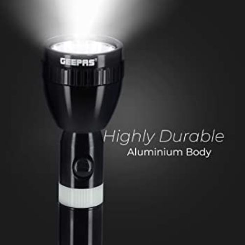The Geepas GFL3858 Flash Light is the ideal device for use in case of power outages. It is a Hyper Bright cool white LED light that can illuminate any dark area. This flashlight operates on high quality batteries that can be charged up to 1500 times. On a single charge, the battery can run for 6 hours continuously. With a range of 2800 meters, this torch provides great safety and security both indoors and outdoors. The machined aircraft aluminum makes this flashlight sturdy and durable.