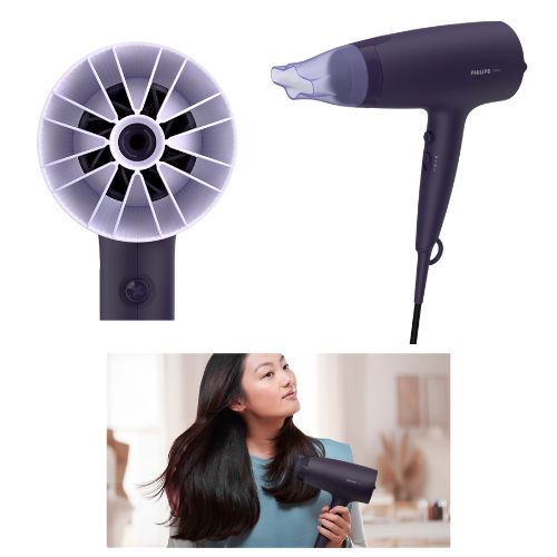 The uniquely-designed ThermoProtect attachment powerfully mixes warm and cool air for everyday care. It drops the temperature by 15°C while still drying your hair quickly.