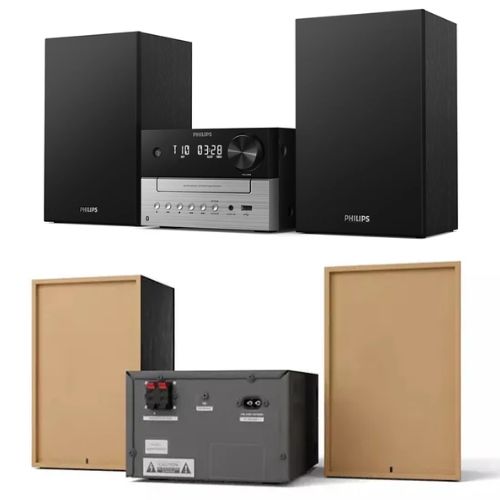 You’ll enjoy crisp, clear stereo sound with deep bass as the bookshelf-style speakers make the most of the system’s powerful 20 W (RMS) output, 3” woofers, and bass-reflex ports. Digital Sound Control lets you pick from preset sound styles—music to radio dramas, you’ll always get the best sound for what you’re listening to.