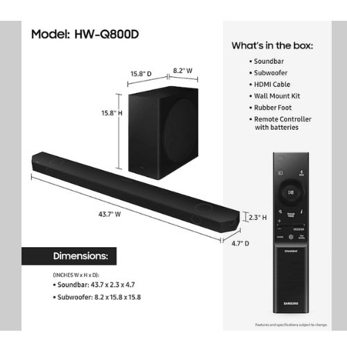 • Net Dimension (Sub Woofer) (WxHxD, mm) 210 x 403 x 403